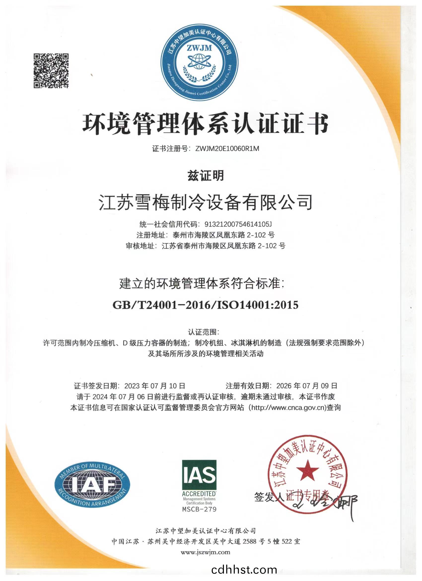 江蘇雪梅制冷設備有限公司